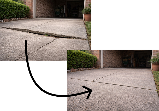The driveway was lifting near the garage - SlabFix sorted it in one morning. No dust, hardly any noise. Brilliant.